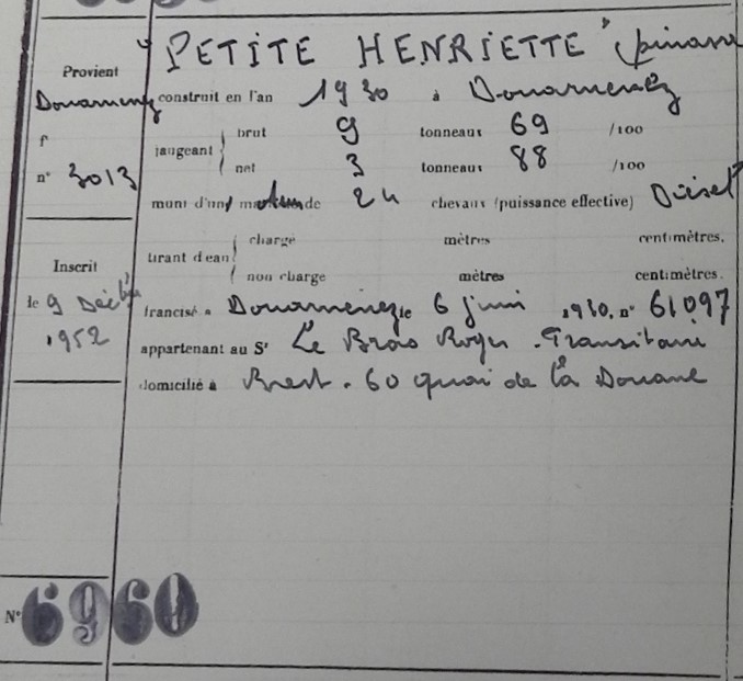 Passé à Brest (BR6960) en 12.1952 (reg BR en PJ3).