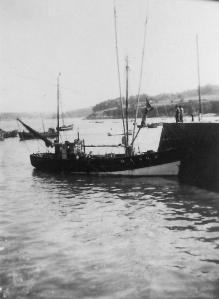 A la suite de l'explosion de son moteur le maquereautier douarneniste "Feu-Follet" dérivait vers les Pierres Noires - Il est pris en remorque par le canot de sauvetage de Molène