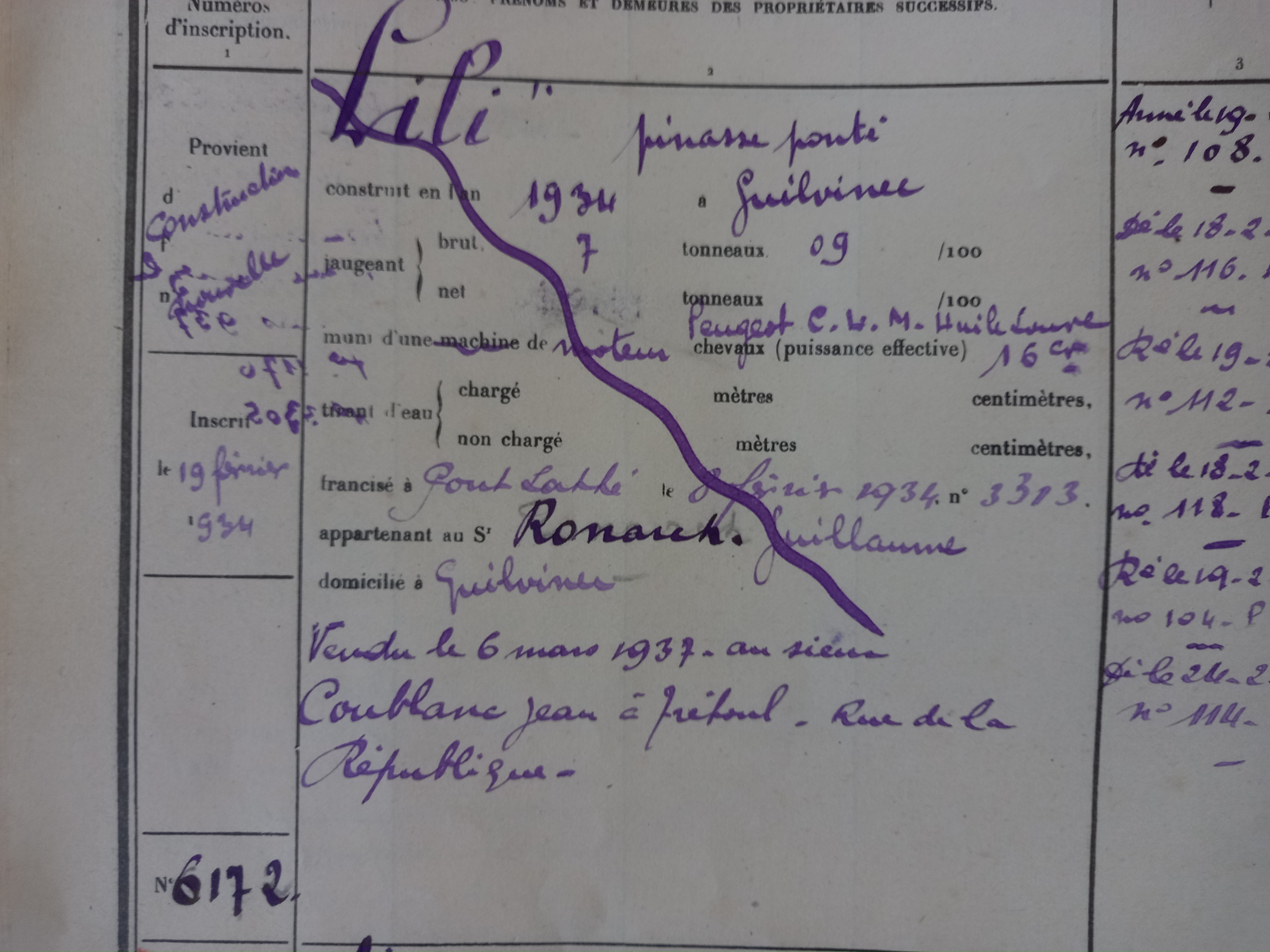 Construit en 1934 à Léchiagat. Inscrit au Guilvinec (GV6172)