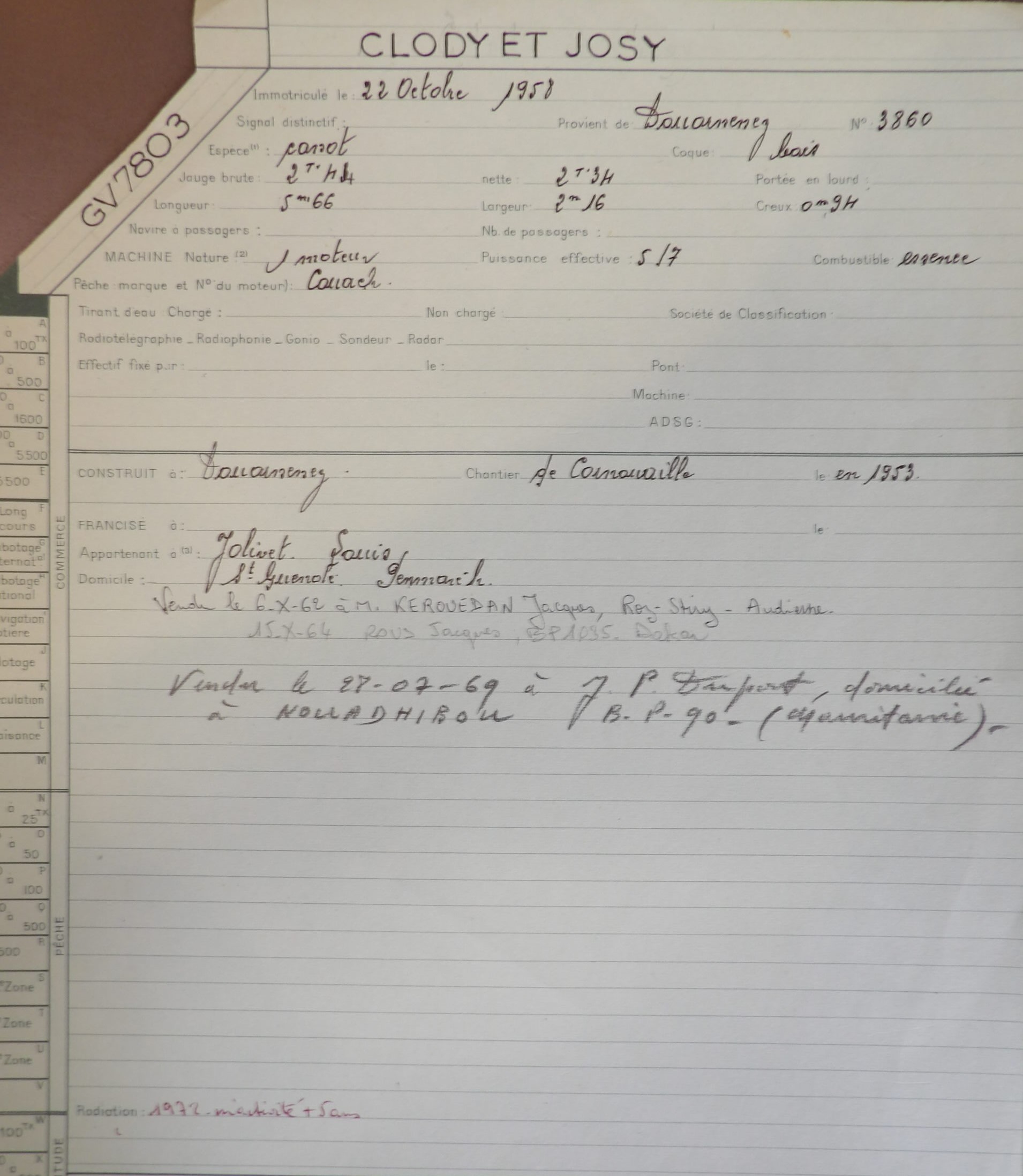 Passé "Claudy Josy" GV7803 en 1958. Louis Jolivet St Guénolé.