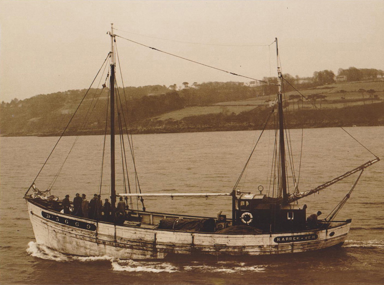 Le bateau navigue avec ce propriétaire jusqu'au 19/10/1950. Changement de registre (de 1950 à ...). Registre non disponible au SHM de Brest. Patron, QUILLIVIC Jean, entre 1955 et 1960 qui le renomme KARREG VEN.