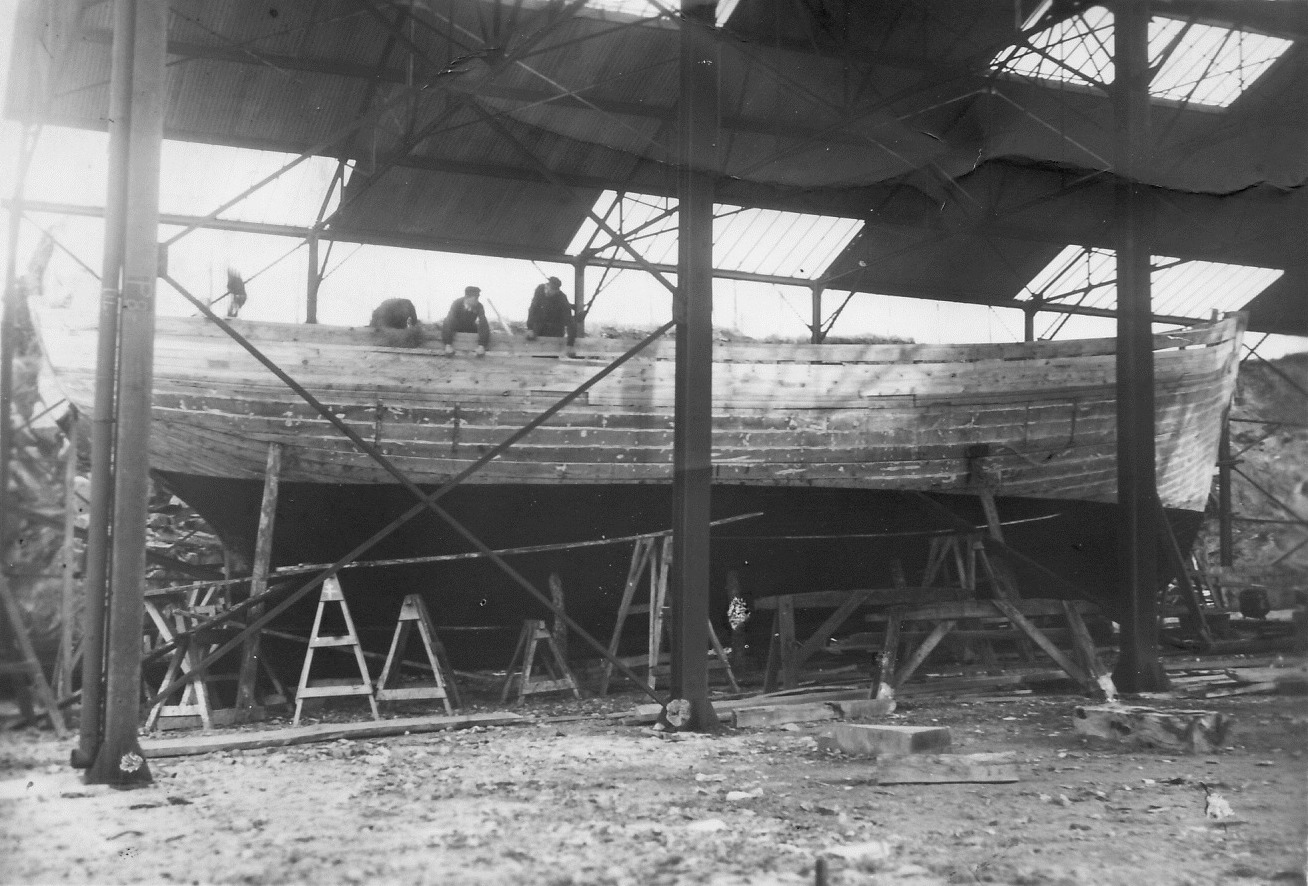 Le navire passe à Camaret CM3079, armement LE BRETTON, à MORGAT, en 1957.