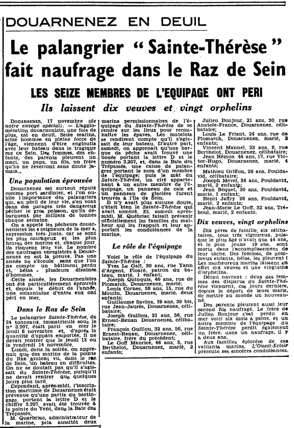 Yves Le Gall, Joseph Quinquis, Louis Cornec, Guillaume Savina, Joseph Guillou, François Guillou, Maurice Le Goff, Julien Bonjour, Louis Le Friant, Vincent Mannel, Jean Hémon, Mathieu Griffon, Joseph Mével, Jean Béquet, Henri Jaffry, Jean-Marie Le Goff