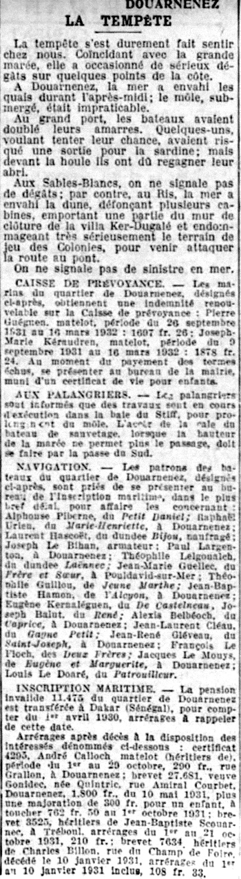 Pierre Guéguen, Joseph Marie Keraudren, Alphonse Piberne, Raphael Urien, Laurent Hascoet, Joseph Le Bihan, Paul Largenton, Théophile L'Helgouach, Jean Marie Guellec, Théophile Guillou, Jean Baptiste Hamon, Eugène Kernaléguen, Joseph Balut, Alexis Belbéoch, Jean Laurent Cléau, Jean René Gléveau, François Le Floch, Jacques Le Mouys, Louis le Doaré, André Calloch, Vve Gonidec-Quintric, Héritiers Jean Baptiste Scouarnec, Héritiers Charles Billon