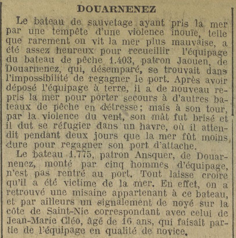 patron Jaouen, patron Ansquer, novice Jean-Marie Cléo