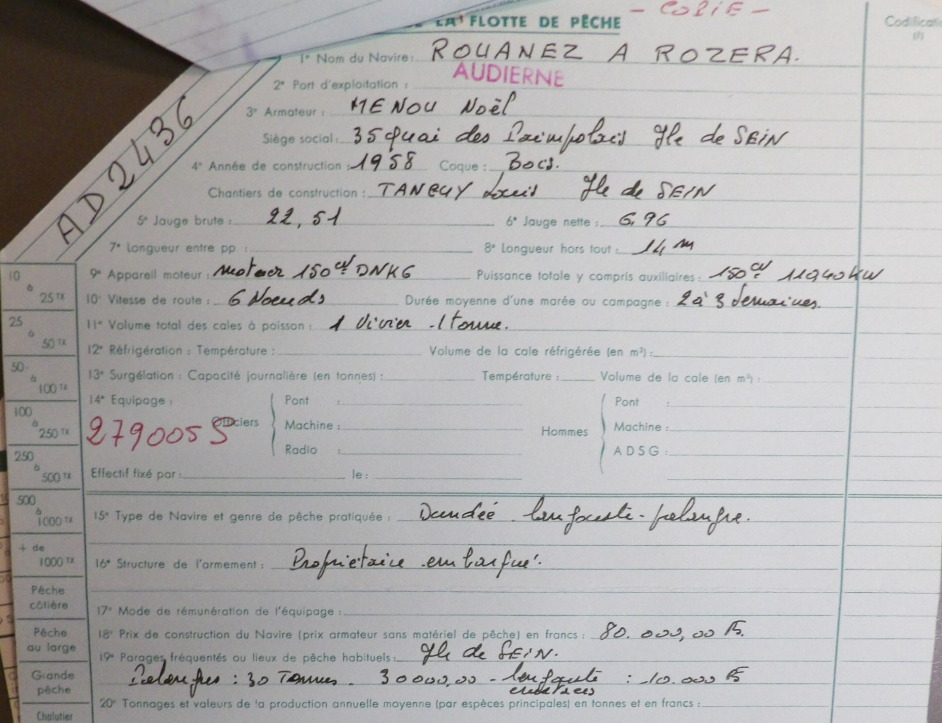 A l'origine au quartier d'Audierne (Au2436, puis AD279005) avec Noël MENOU.