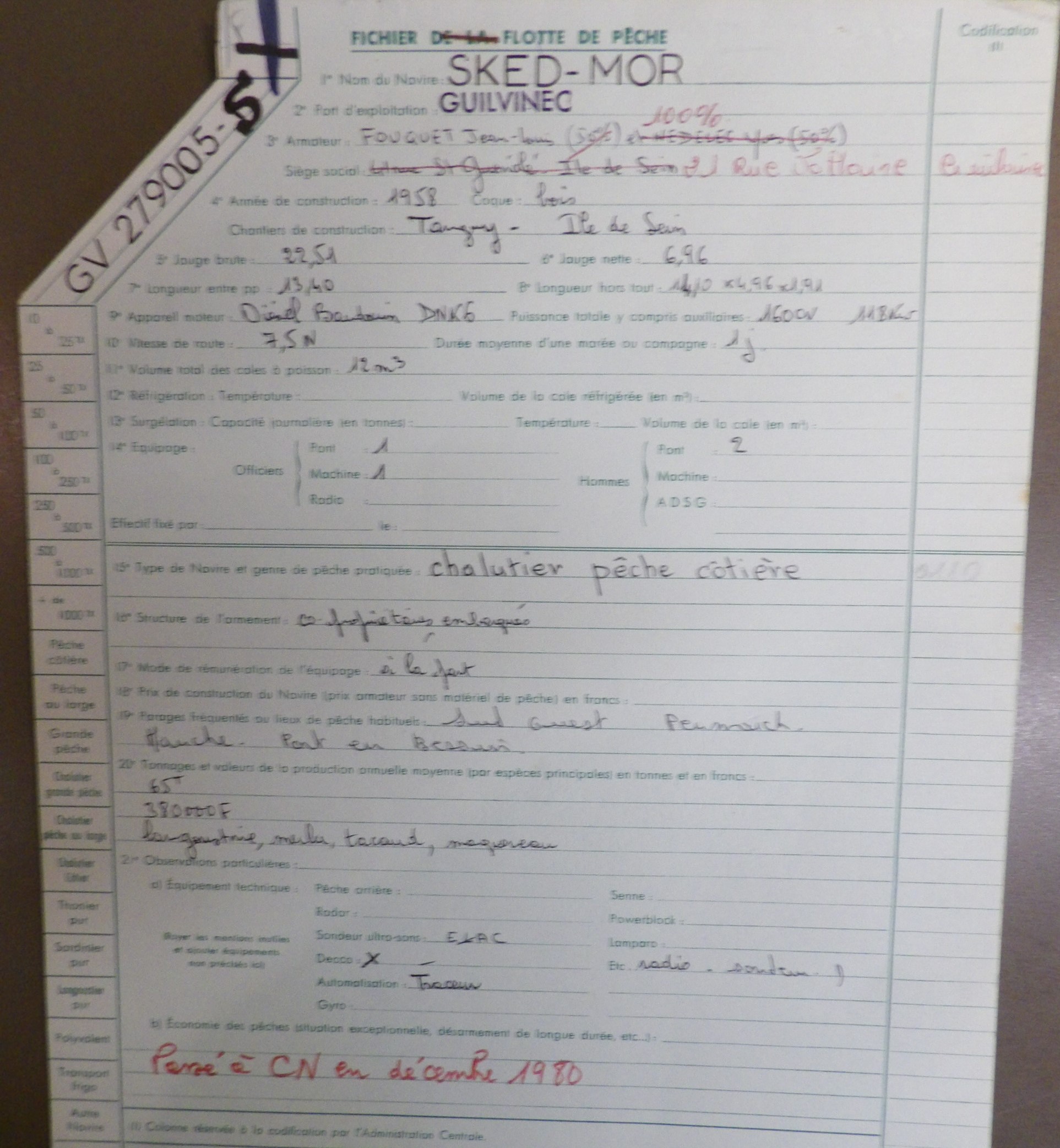Passe "SKED MOR" (CN279005) en 1980 avec le même patron, basé à Port-en-Bessin.