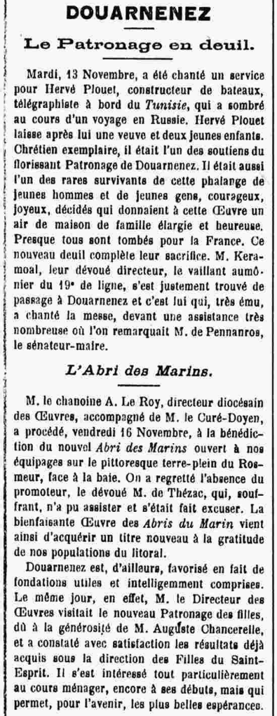 Hervé Plouet, aumônier Keramoal, M. de Pennanros, chanoine A. Le Roy, M. de Thézac, Auguste Chancerelle