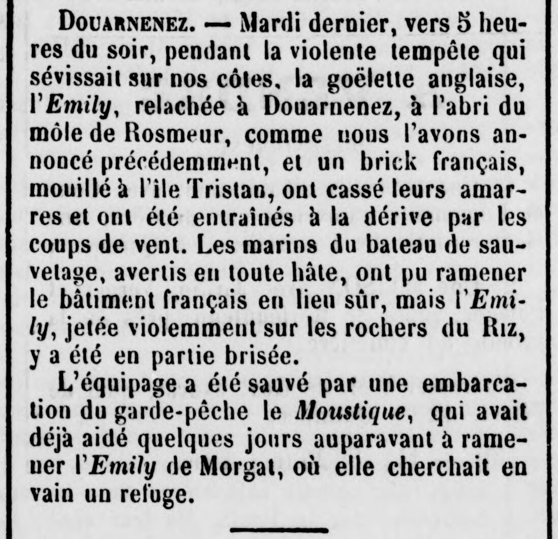 goélette anglaise "Émily", cotre garde-pêche le "Moustique"