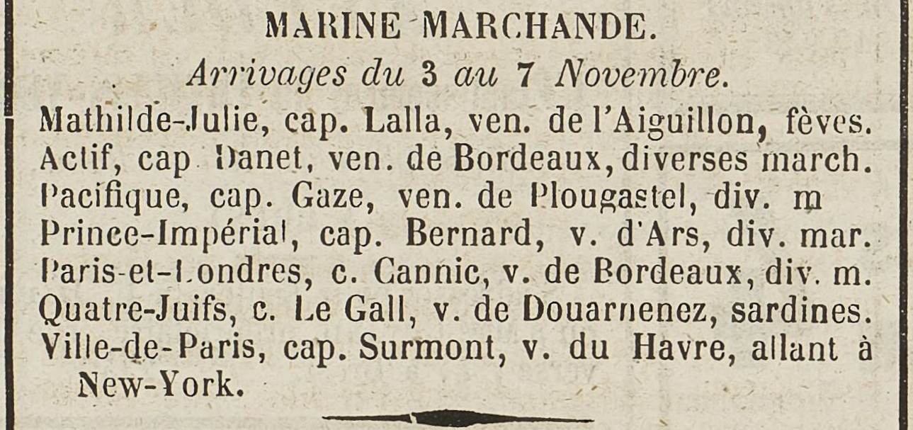 "Mathilde-Julie", "Actif", "Pacifique", "Prince-Impérial", "Paris-et-Londres", "Ville-de-Paris"