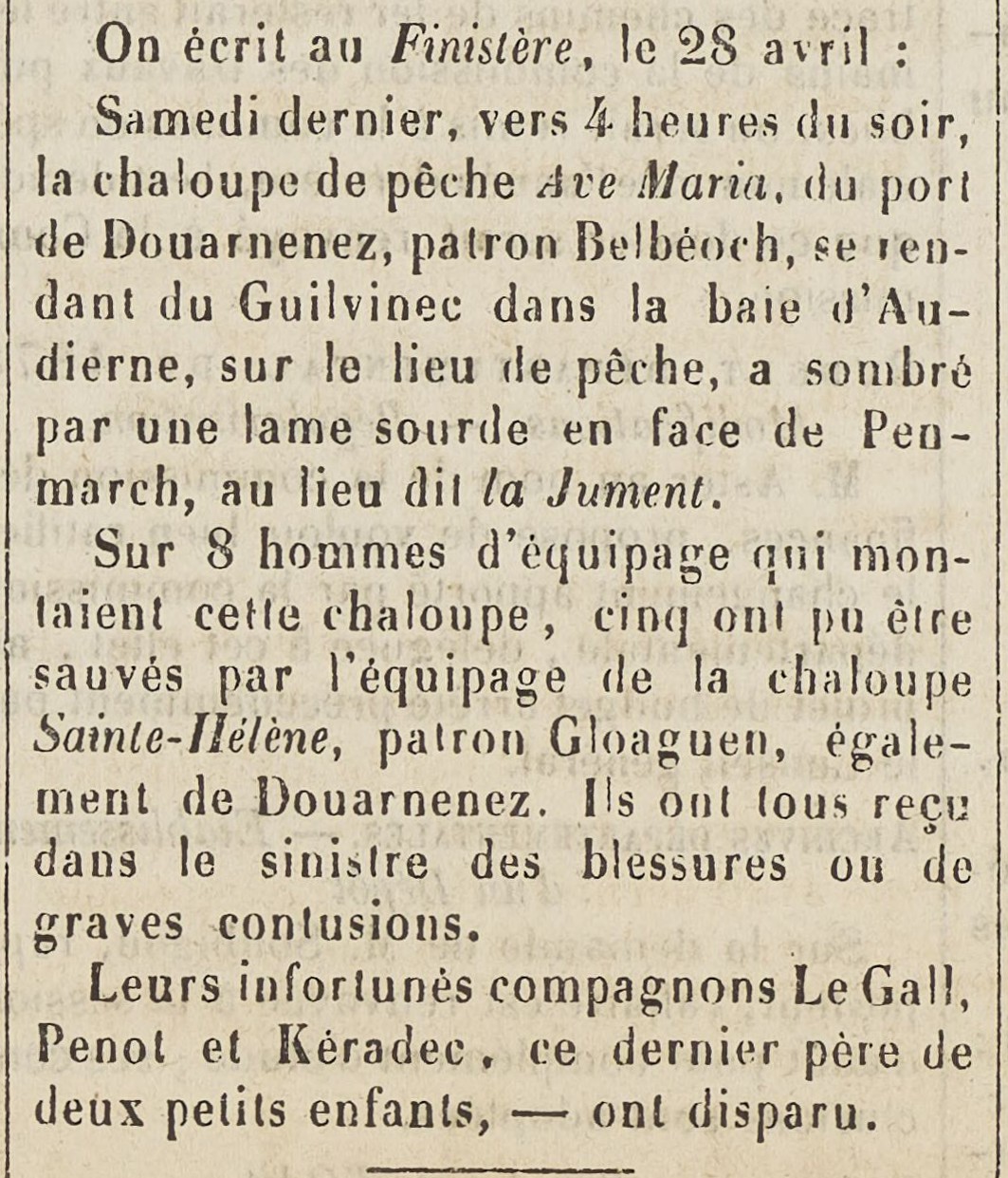 patrons Belbéoch et Gloaguen, matelots Le Gall, Penot et Kéradec