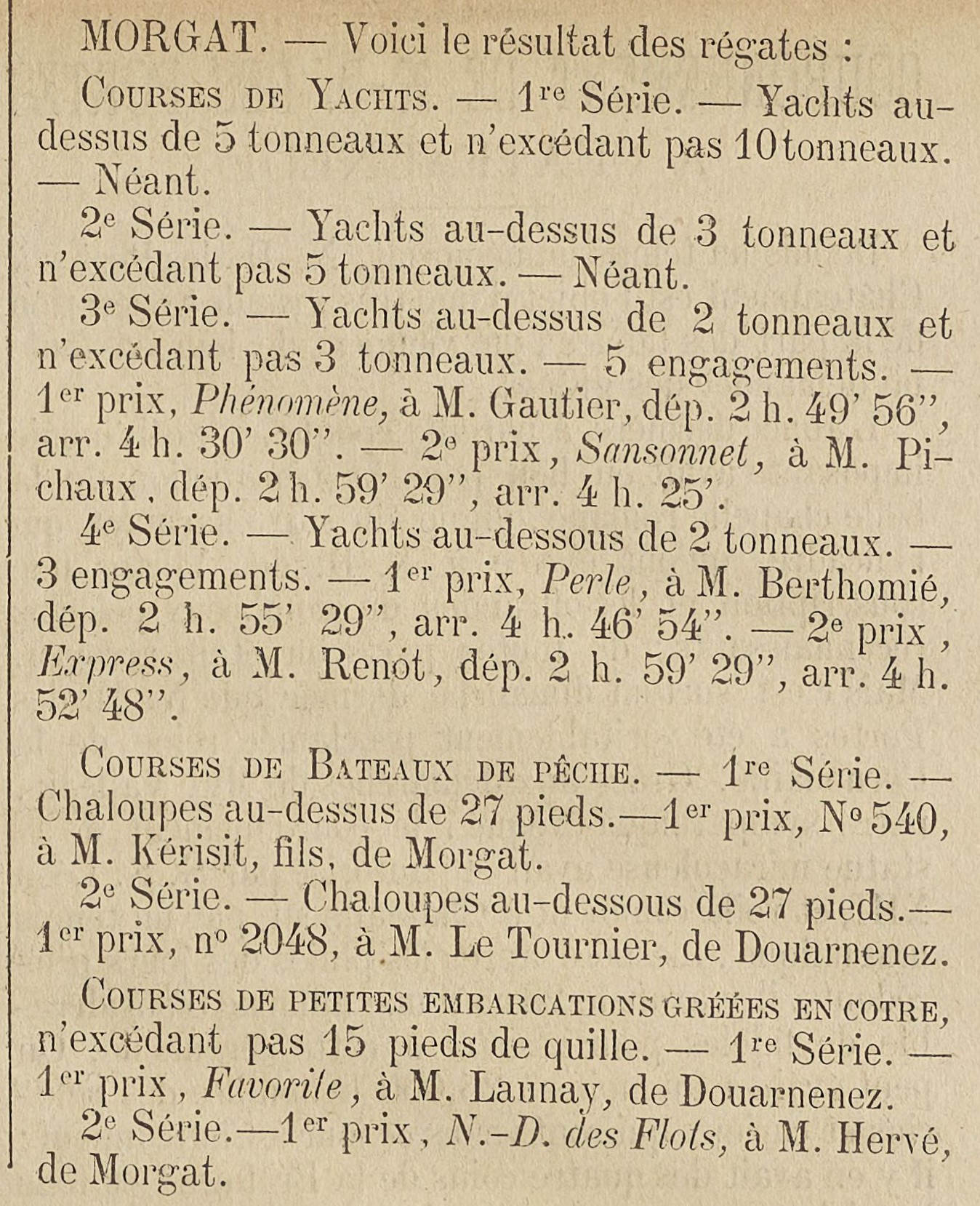 yachts "Phénomène", "Sansonnet", "Perle" et "Express", chaloupes n° 540 (Morgat) et "N.-D. des Flots" (Morgat)