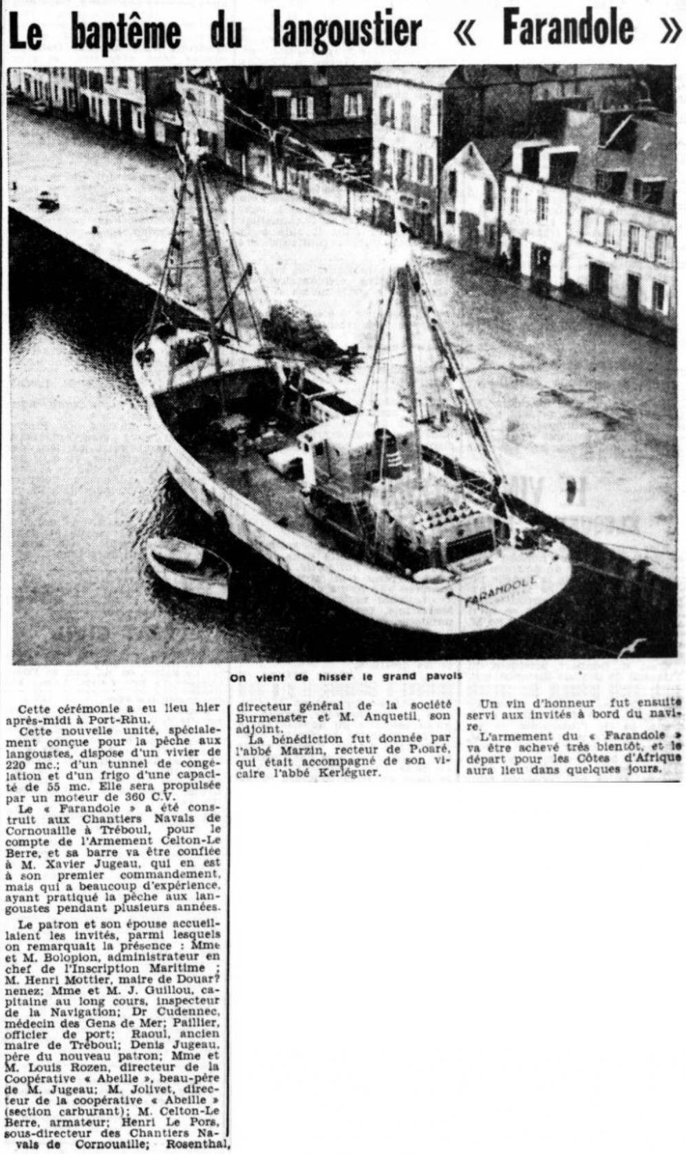 armement Celton-Le Berre, patron Xavier Jugeau, M. et Mme Bolopion, Henri Mottier, M. et Mme J. Guillou, Dr Cudennec, Paillier, Raoul, Denis Jugeau, M. et Mme Louis Rozen, Jolivet, Henri Le Pors, Rosenthal, Anquetil, abbés Marzin et Kerléguer