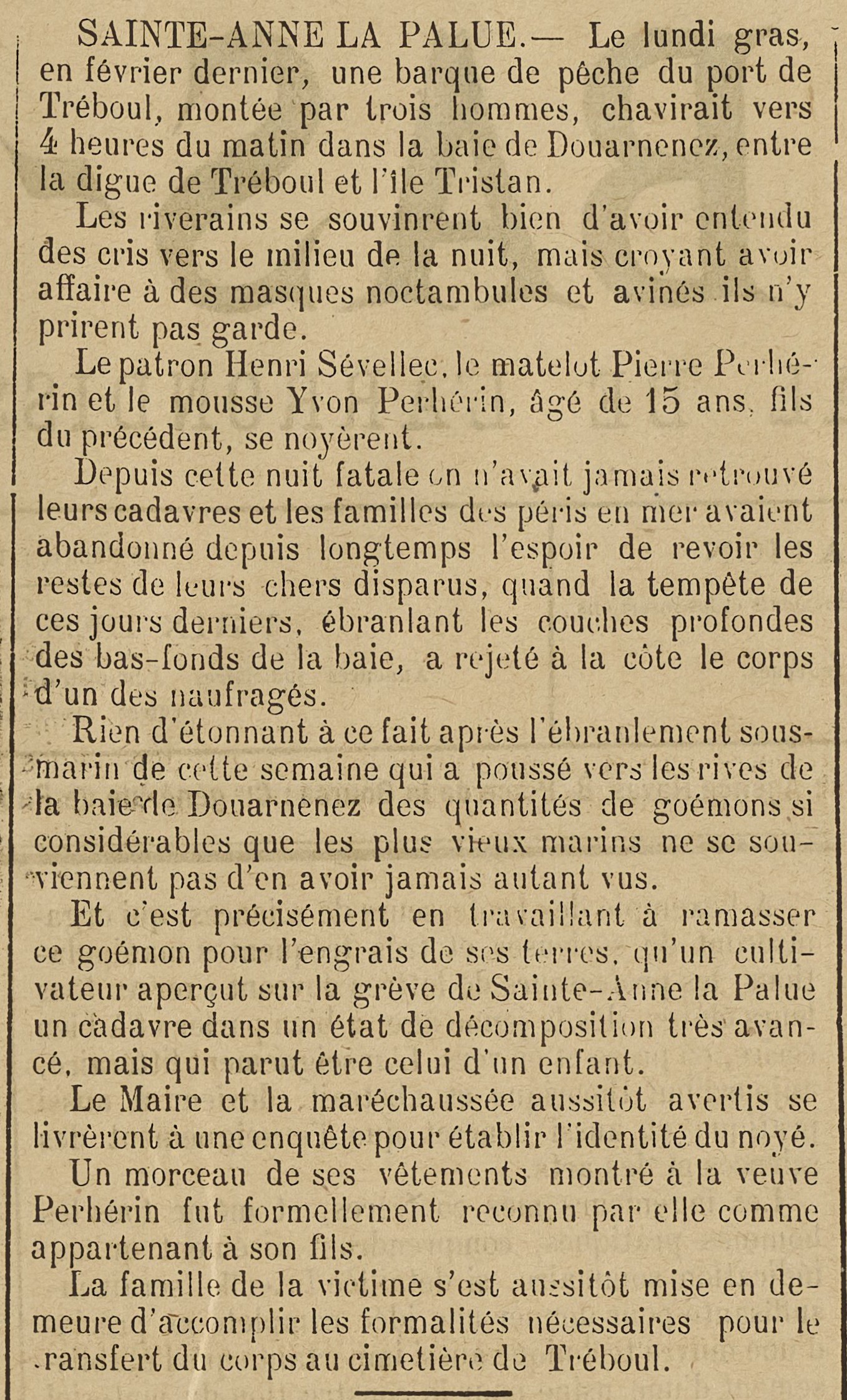 patron Henri Sévellec, matelot Pierre Perhérin, mousse Yvon Perhérin, veuve Perhérin
