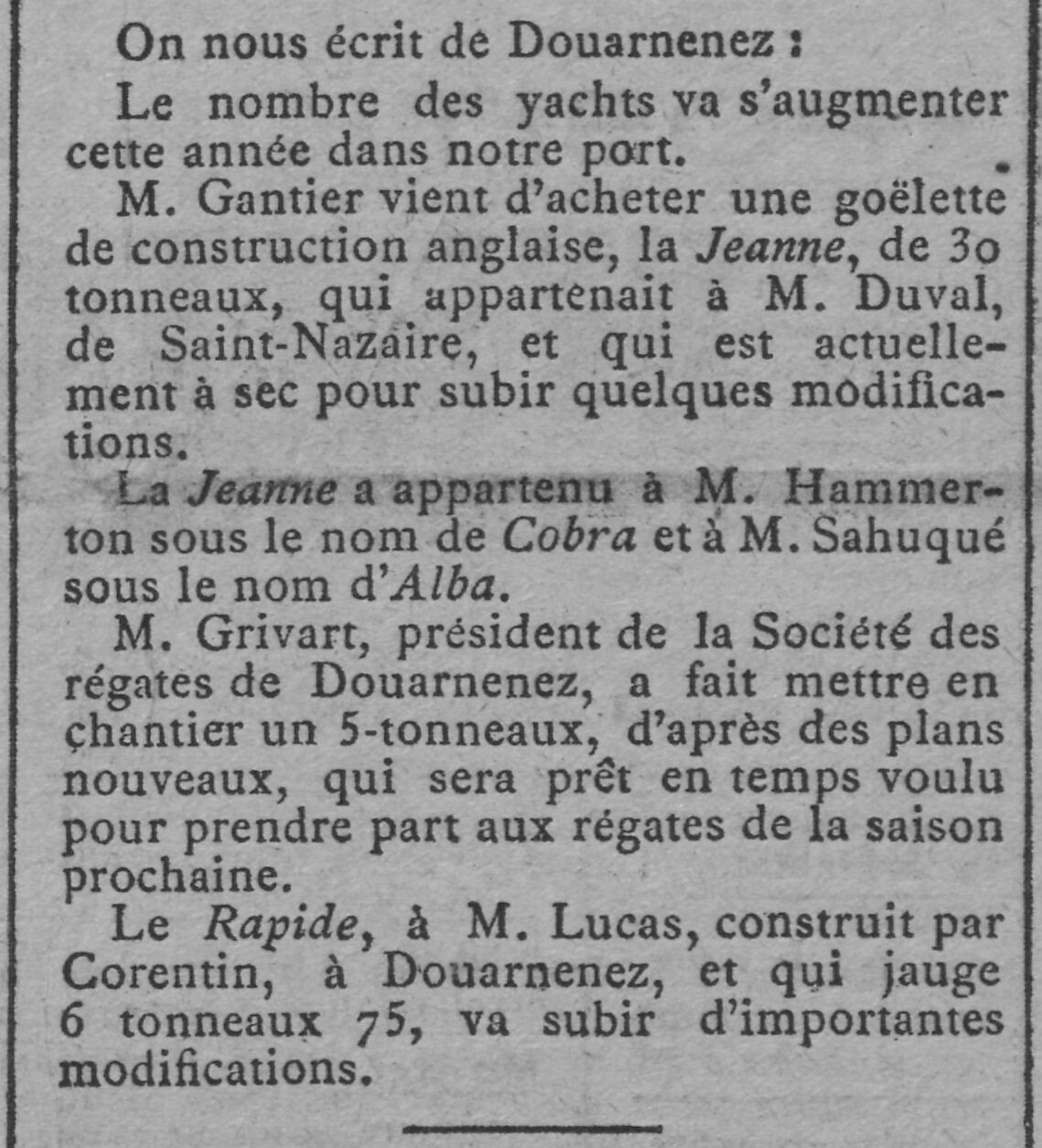 goélette "Jeanne" (ex-"Cobra", ex-"Alba"), yacht "Rapide"