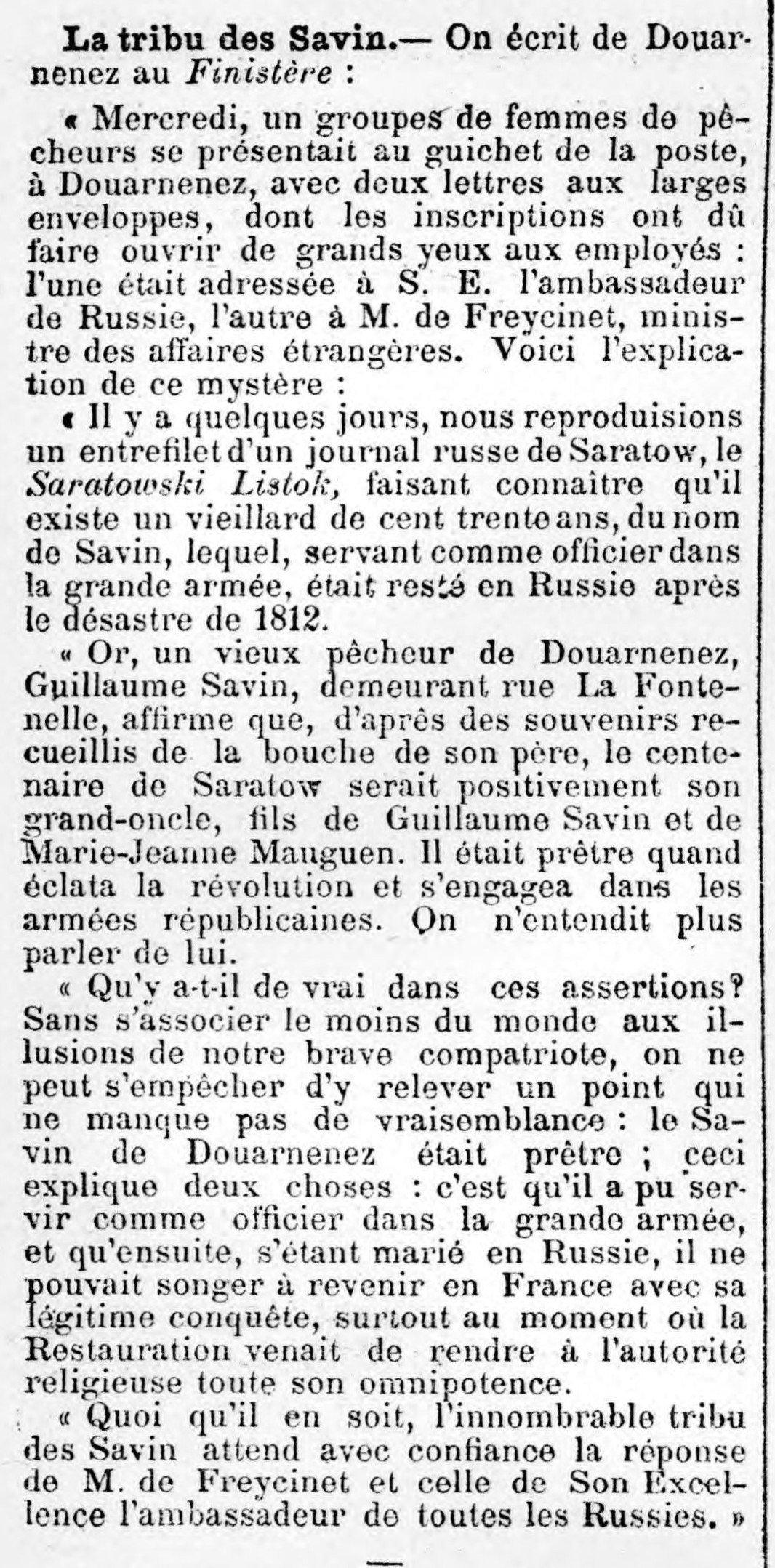 M. de Freycinet, vieillard Savin, Guillaume Savin, Marie-Jeanne Mauguen