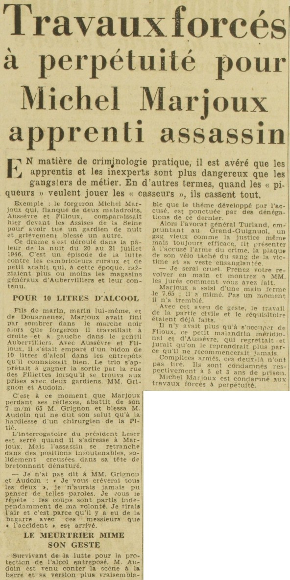 Michel Marjoux, Aussèvre, Filloux, MM. Grignon et Audoin, président Leser, avocat général Turland