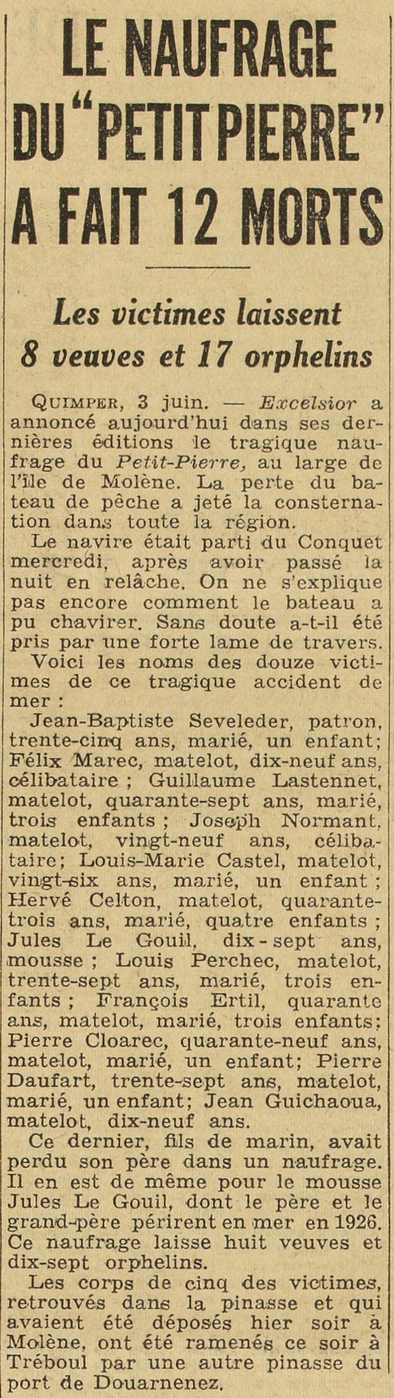patron Jean-Baptiste Sévéléder, Félix Marec, Guillaume Lastennet, Joseph Normant, Louis-Marie Castel, Hervé Celton, Jules Le Gouil, Louis Perchec, François Fertil, Pierre Cloarec, Pierre Daufart, Jean Guichaoua