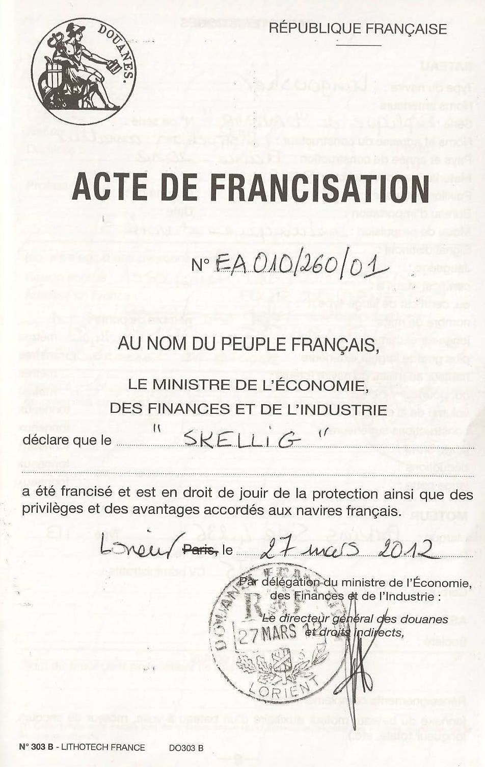 Source Association "Un langoustier pour Douarnenez" Numéro EA010/260/01 Bateau SKELLIG - DZ2011 - E67235G Langoustier - 2012 Date 27 mars 2012 Image