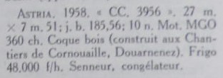 Le navire passe à Concarneau le 20/11/1964, repris par l'Armement DHELLEMMES. Il est immatriculé CC3953. Insertion dans l'annuaire CC 1967. Attention, erreur : il y est indiqué CC3956, mais c'est bien CC3953.