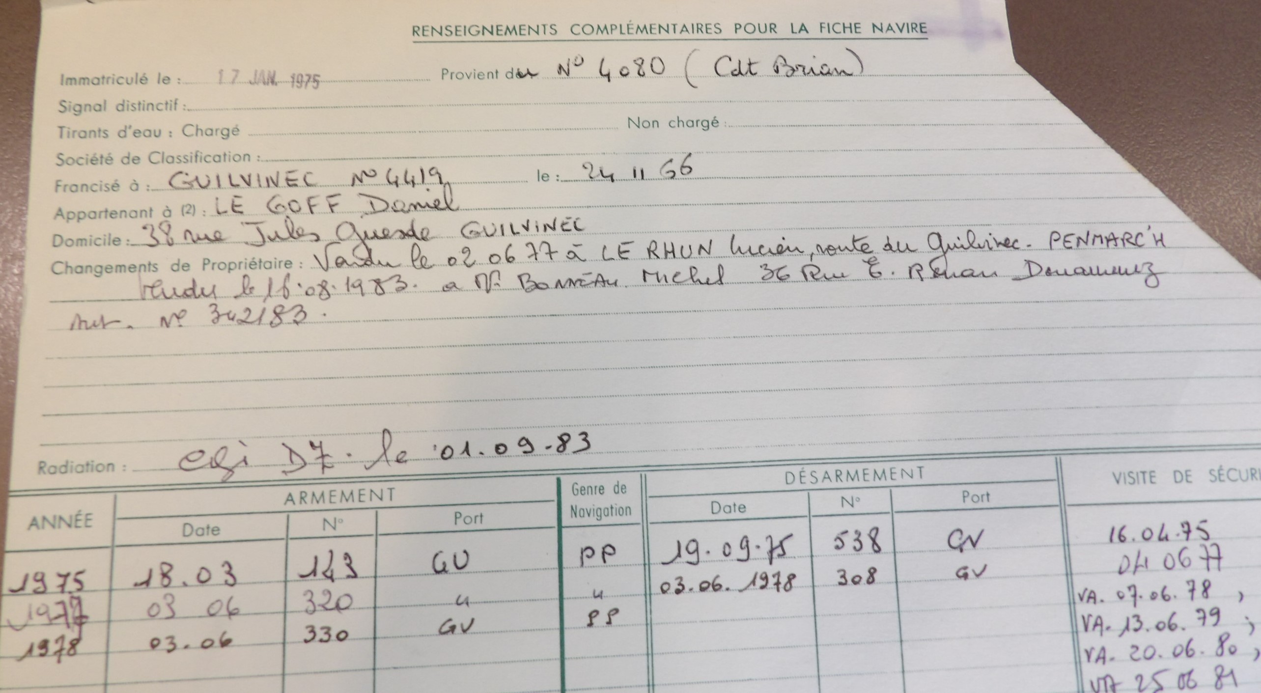 Inscrit en plaisance GV4080 en 1966