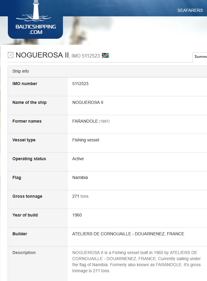 Passé en Afrique du Sud, en 1976. Reste à quai au Cap. N'a pas navigué sous pavillon sud-africain.