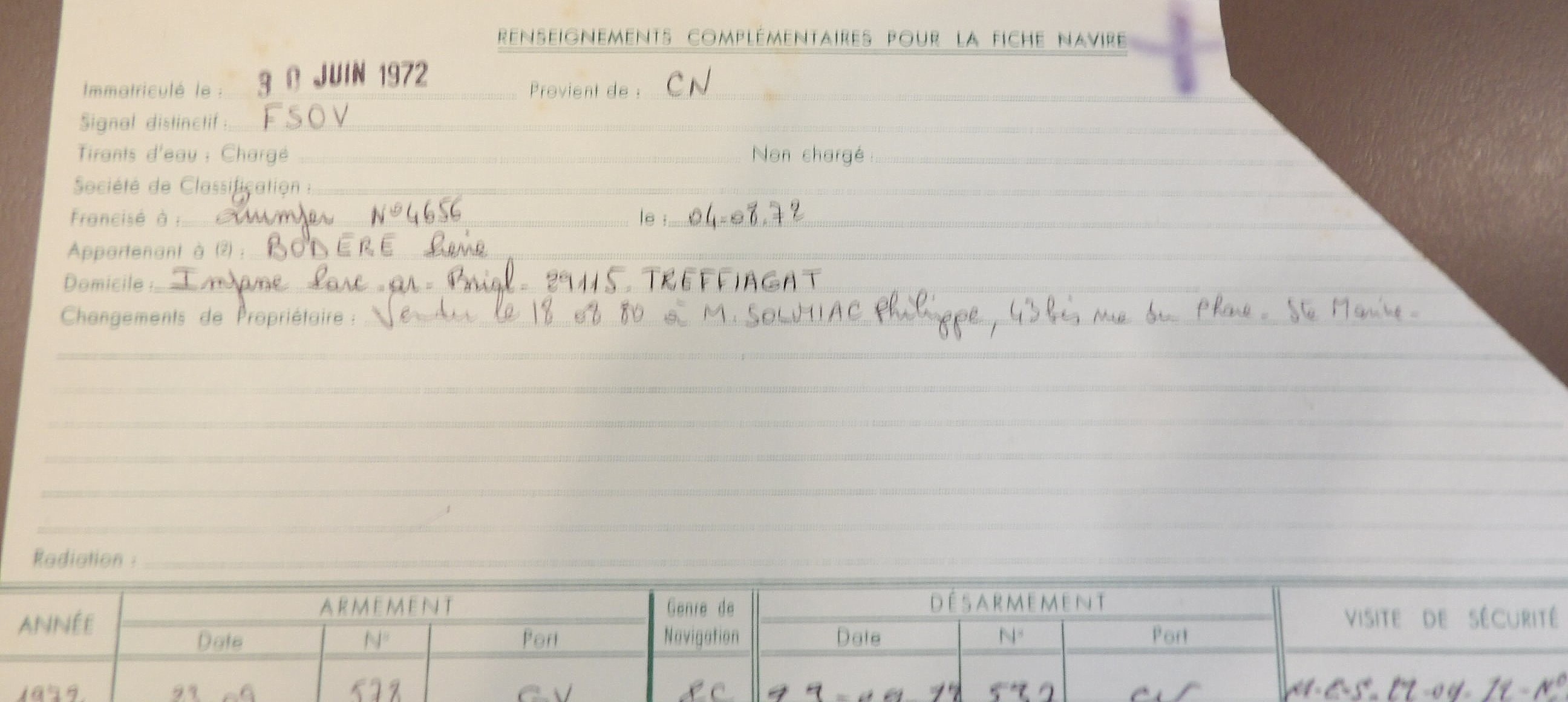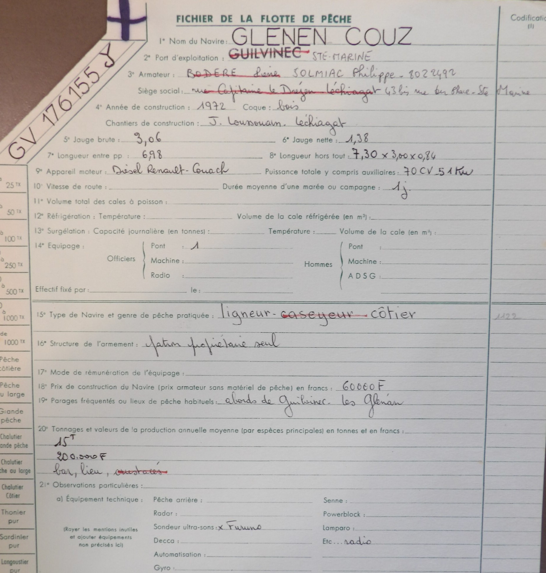 Construit en 1972 à Léchiagat GV176155. Devient DZ176155 en 1998. Passe au quartier d'Auray en 1998. Détruit en 2001.