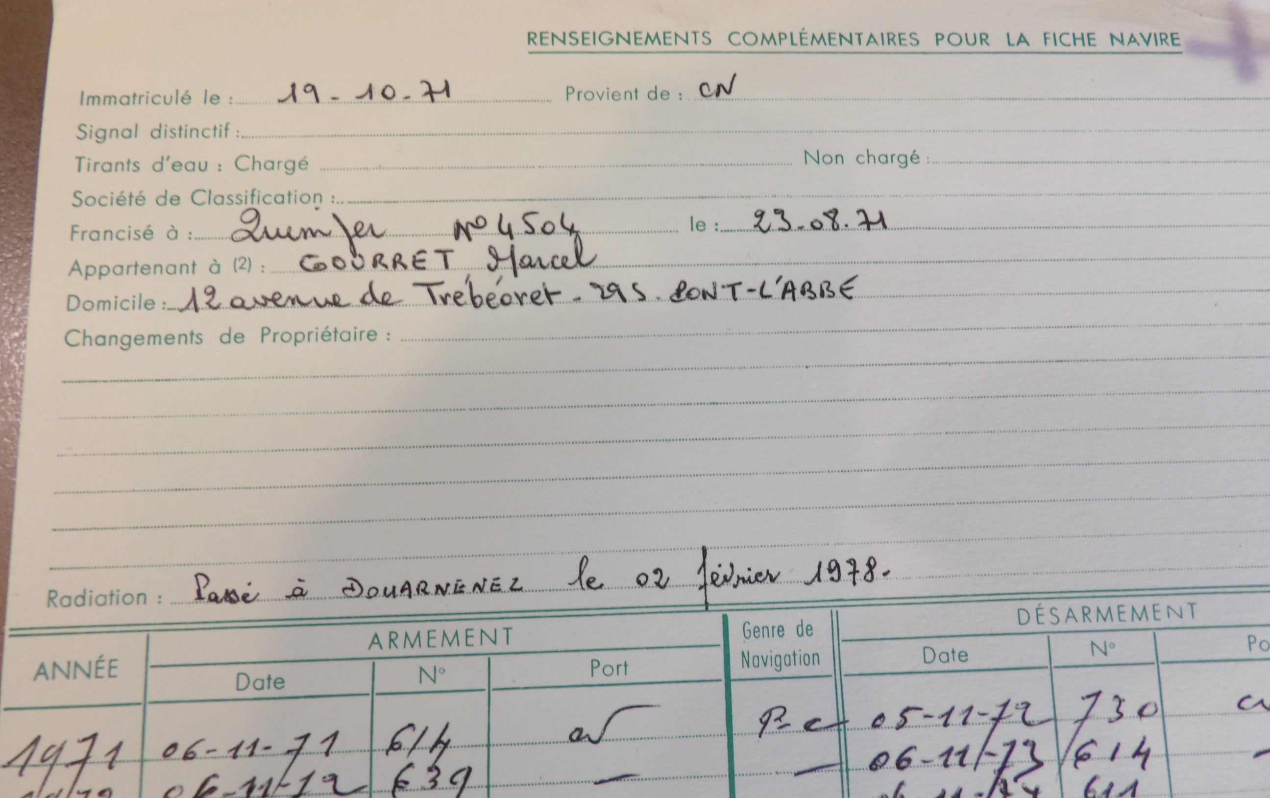 Ce bateau a été inscrit à Douarnenez pendant 6 années.
