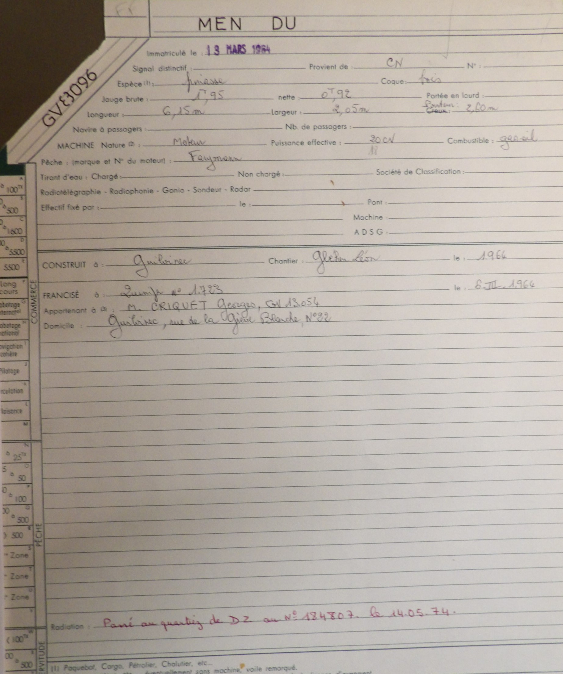Ex GV8096, passé DZ en 1974.