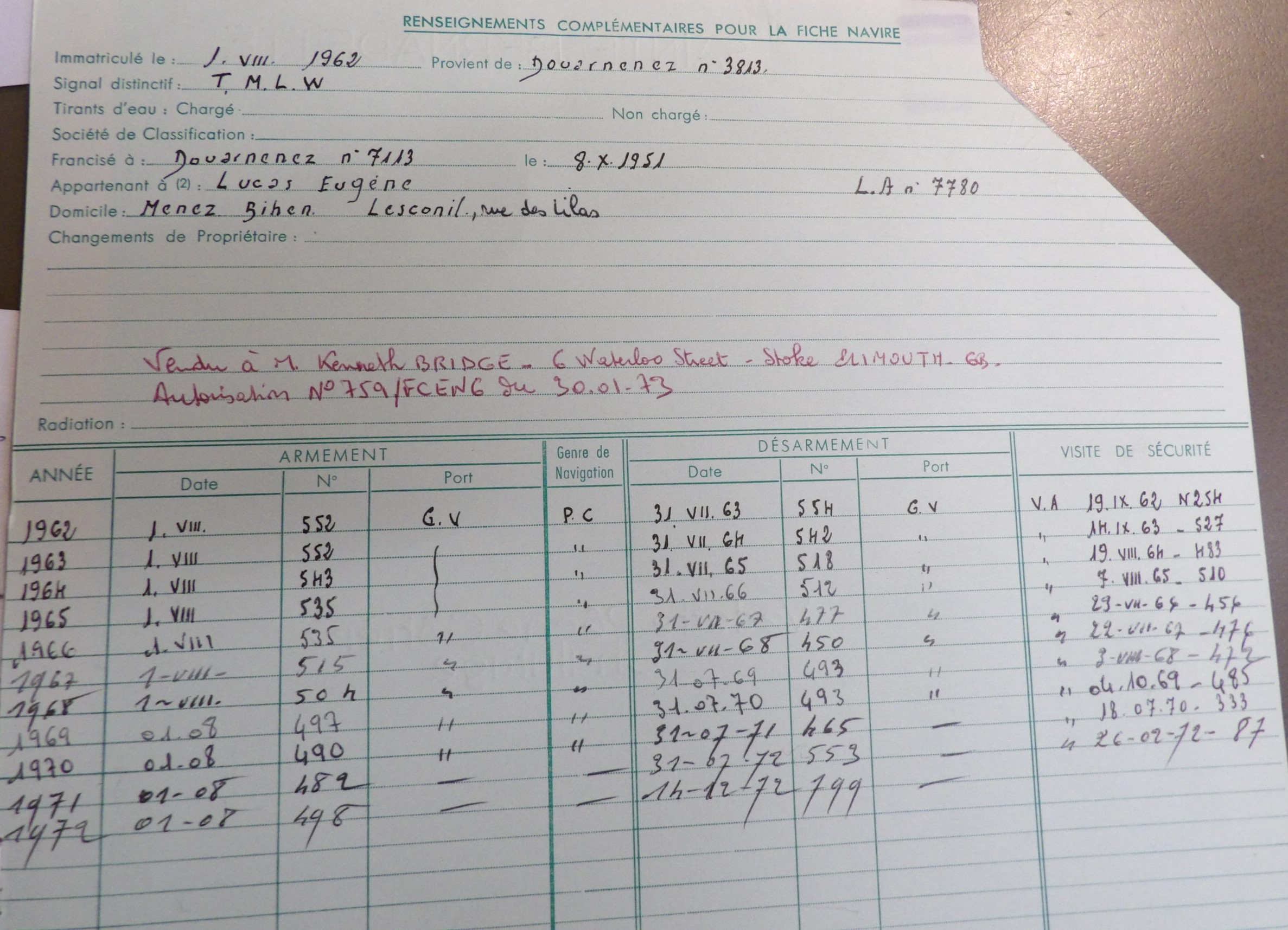 Ce bateau a été inscrit à Douarnenez pendant 11 années.