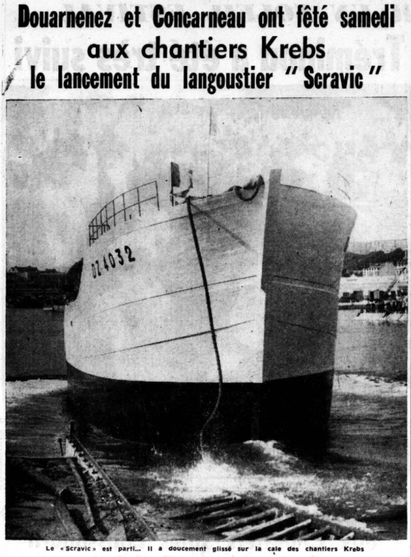 Jacques Nouy dit : Donnart, chantier naval de Concarneau nous disait quels étaient les critères formulés par Celton armateur, lors de la commande de la construction du Scravick : Un bateau pas trop grand, avec une grande cale, un petit vivier pour beaucoup de langoustes, un moteur de faible puissance, mais un bateau qui marche vite et surtout qu'il ne coûte pas trop cher.