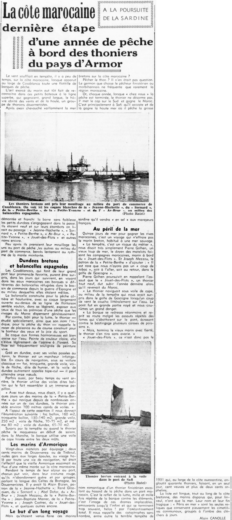 Campagne de pêche, Sardine salée, Thoniers, Dundées, Flottille, Mouillage, Balancelles, Port de commerce, Pêche au thon, Voiles, Navigation, Vitesse, Tempête, Pêche au maquereau, Voile de cape, Équipages, Costumes, Langue bretonne, Tempête de 1930, Loup de mer, Coup de tabac, Coup de vent, Danger, Vagues, Pont, Bastingage, Drame de mer, Catastrophe, Naufrages, Veuves, Orphelins, Disparus, Péris en mer, Cimetière, Clocher