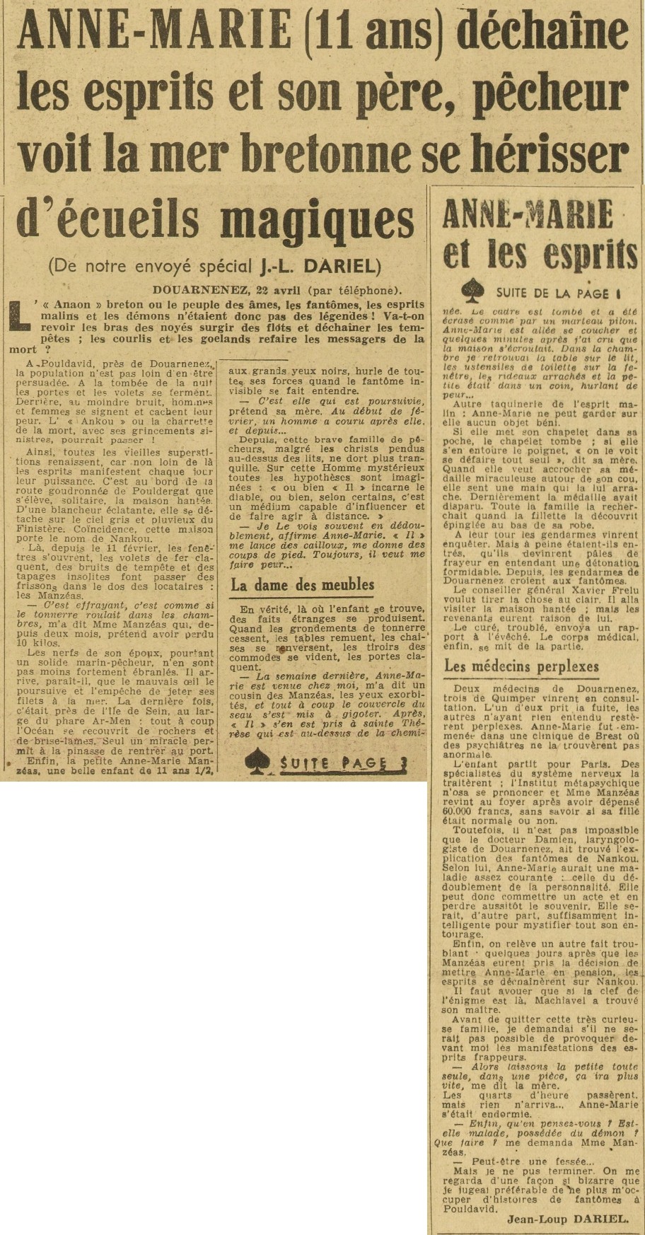 ANNE-MARIE (11 ans) déchaîne les esprits et son père, pêcheur, voit la mer bretonne se hérisser d'écueils magiques (De notre envoyé spécial J.-L. DARIEL)