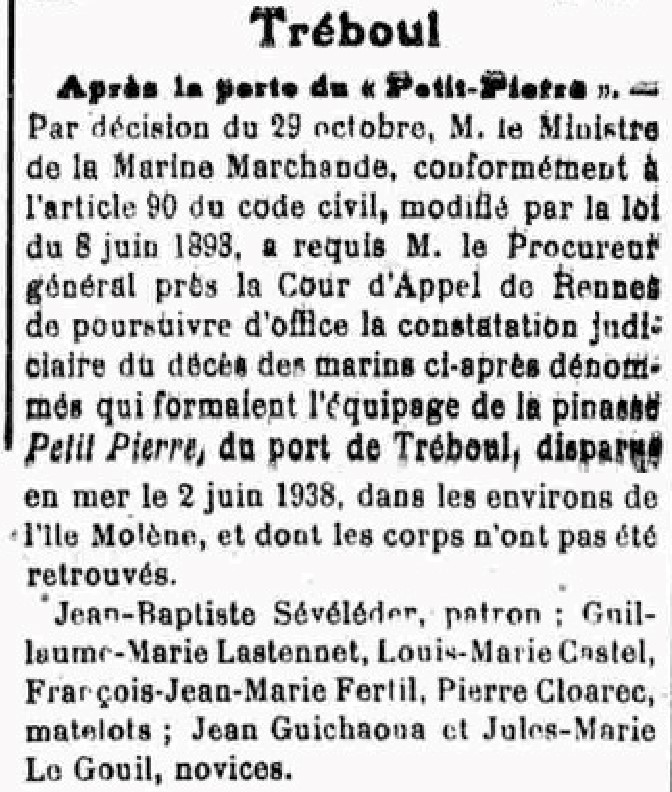 Jean-Baptiste Sévéléder, Guillaume-Marie Lastennet, Louis-Marie Castel, François-Jean-Marie Fertil, Pierre Cloarec, Jean Guichaoua, Jules-Marie Le Gouil
