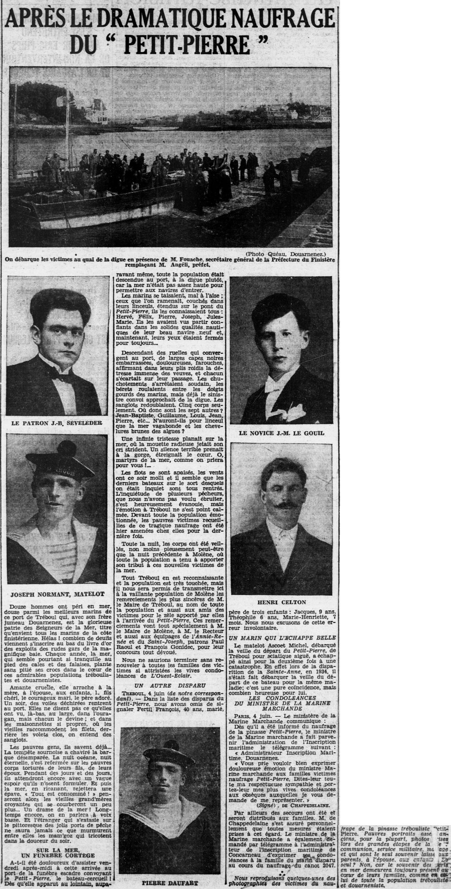MM. Fouache et Angéli, patron Jean-Baptiste Sévéléder, Joseph Normant, Pierre Daufart, J.-M. Le Gouil, Henri Celton, patrons Paul Raoul et François Gonidec, François Fertil, Michel Ascoët, M. de Chappedelaine