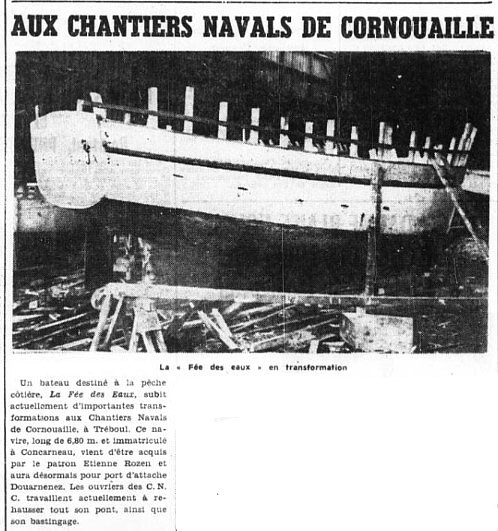 Journal Ouest-France Date 04 janvier 1966 Bateau(x) FÉE DES EAUX - DZ4125 Pinasse - 1965 Mots-clés Transformation, Bateau, Pêche côtière, Pont, Bastingage Lieu(x) Chantier naval de Cornouaille,Tréboul, Concarneau, Douarnenez Personnes Etienne Rozen, Contributeur(s) Audierne Bateaux Image