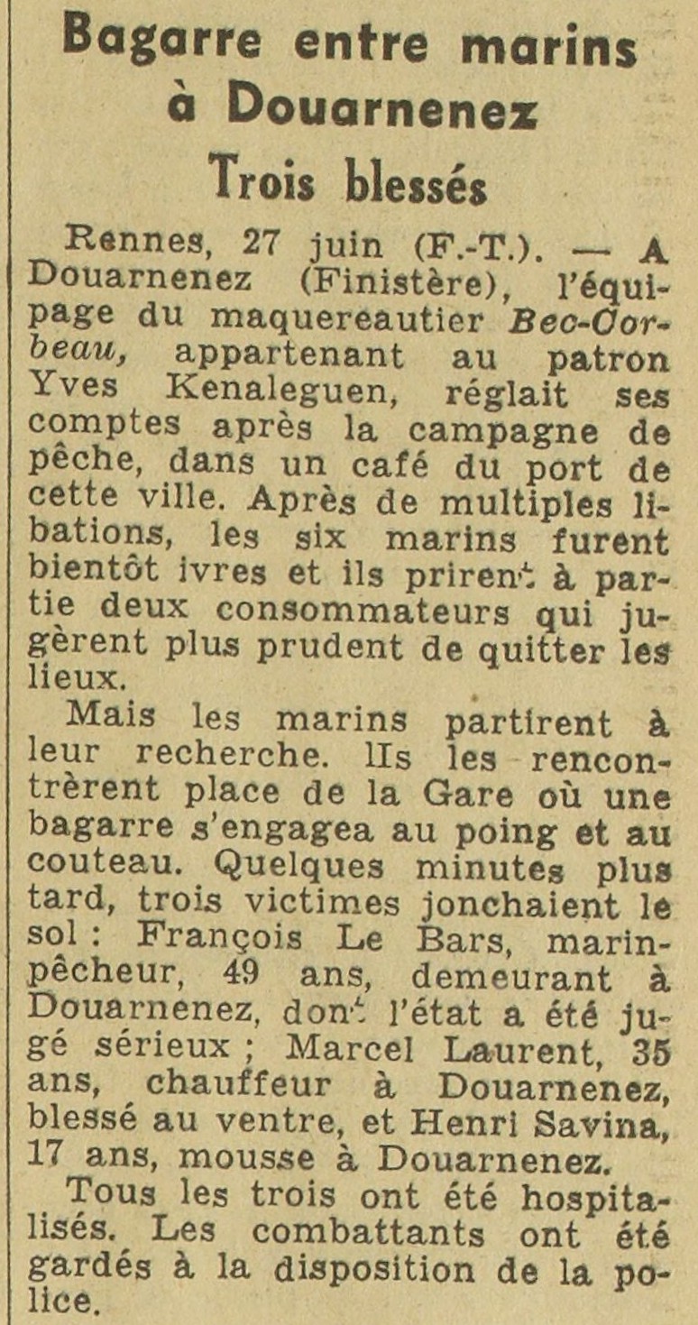Bagarre entre marins à Douarnenez - Trois blessés