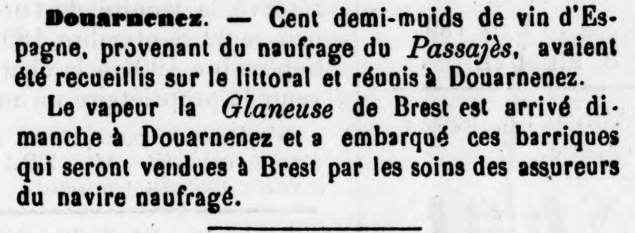 navire espagnol "Passajès", vapeur "Glaneuse"