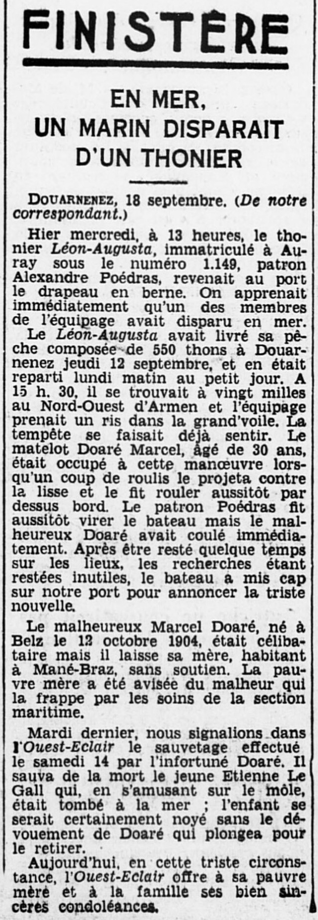 patron Alexandre Poédras, matelot Marcel Doaré, jeune Étienne Le Gall