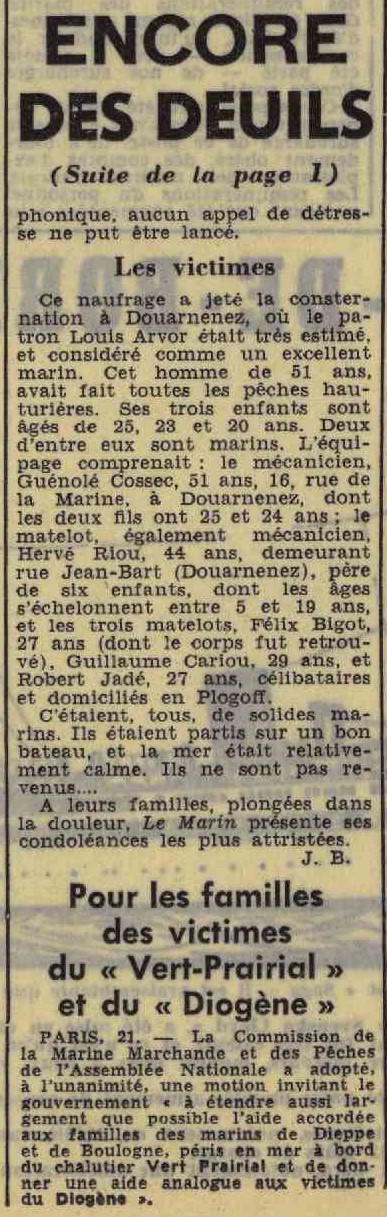 Pierre Le Tiec, Roger Le Marchand, Louis Arvor, M. Long, M. Vessières, M. Gallon, Guénolé Cossec, Hervé Riou, Félix Bigot, Guillaume Cariou, Robert Jadé