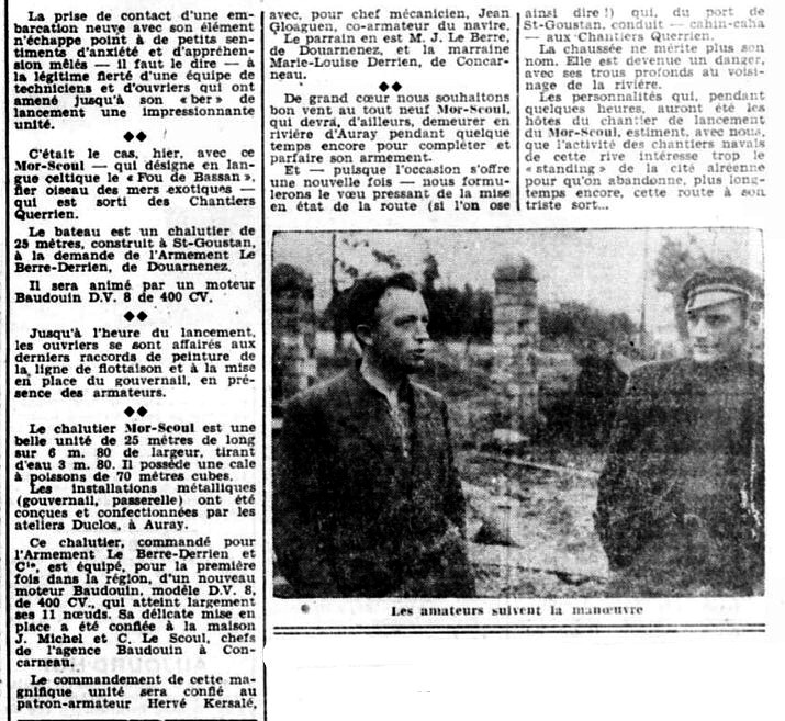 armement Le Berre-Derrien, Chantiers Querrien Saint-Goustan Auray, Patron Hervé Kersalé, Jean Gloaguen mécanicien,