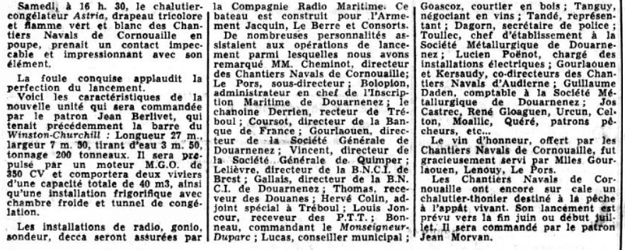 Patron Jean Berlivet, Armement Jacquin, Le Berre et consorts, Cheminot, Le Pors, Patron Jean Morvan,