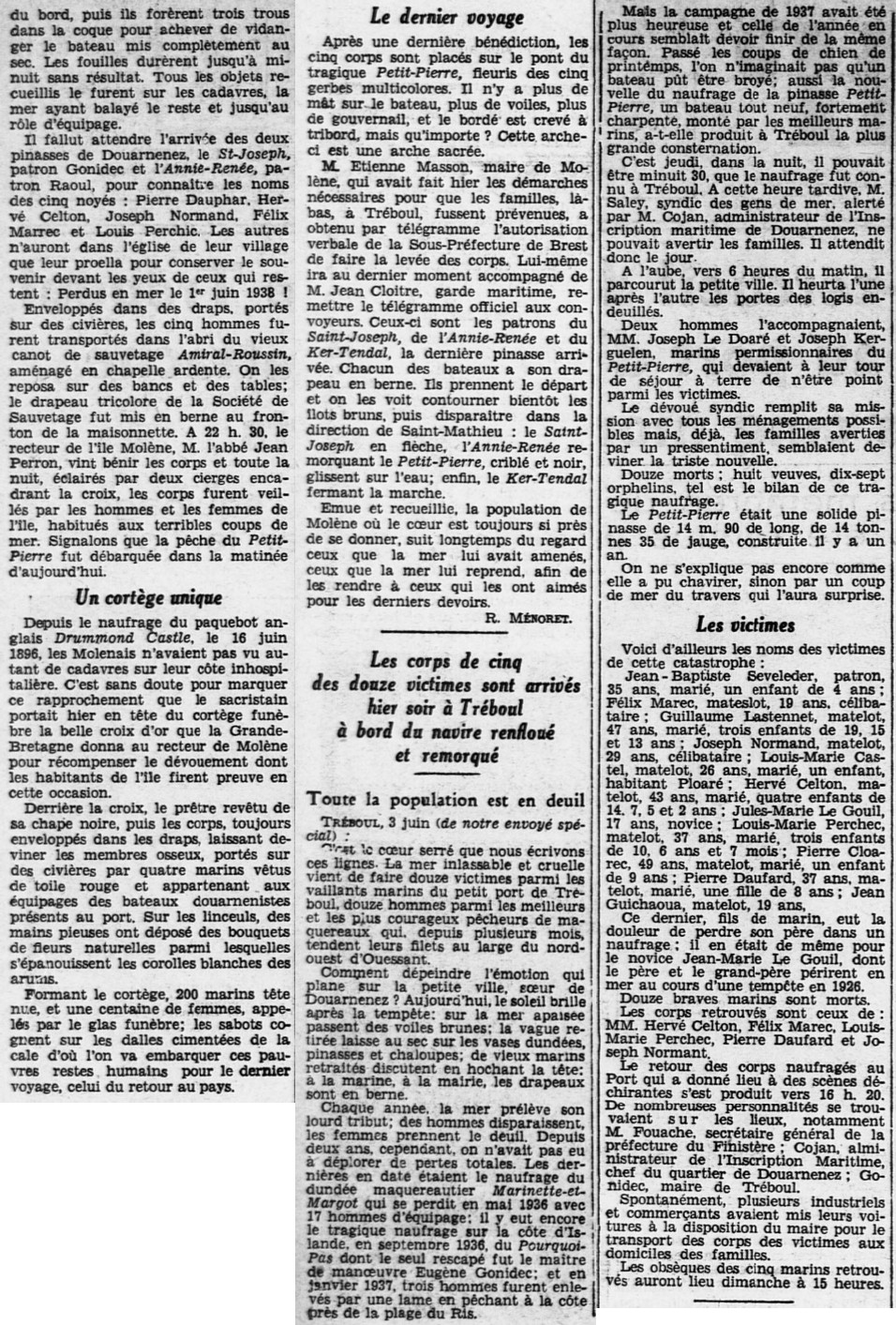 sloop "Céline", "Sainte-Jeanne-d'Arc", vedette "Docteur-Tricart", sloop "Couronne-de-Marie", canot de sauvetage "Amiral-Roussin", "Drummond Castle", "Ker-Tendal", "Pourquoi-Pas"