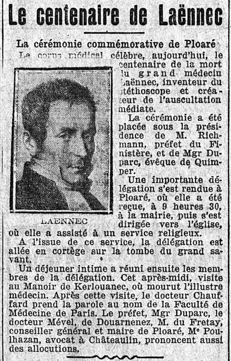 Dr Laënnec, M. Richmann, Mgr Duparc, Dr Chauffard, Dr Mével, M. du Fretay, Me Poulhazan