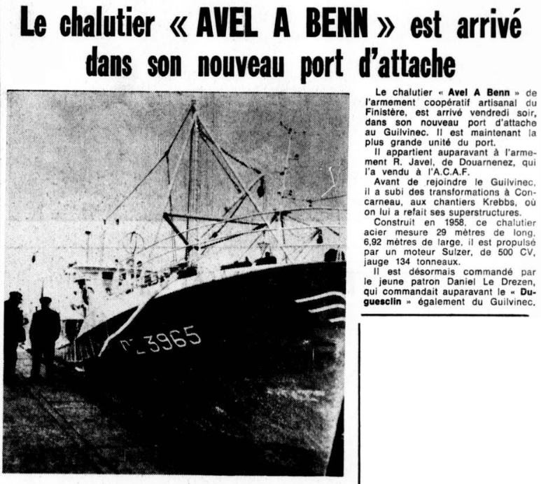 armement R. Javel, chantiers Krebbs, patron Daniel Le Drezen