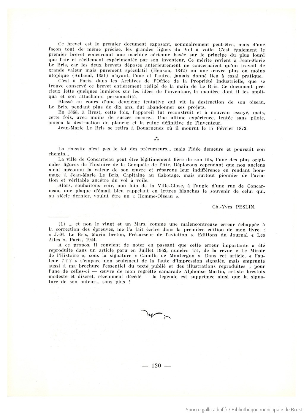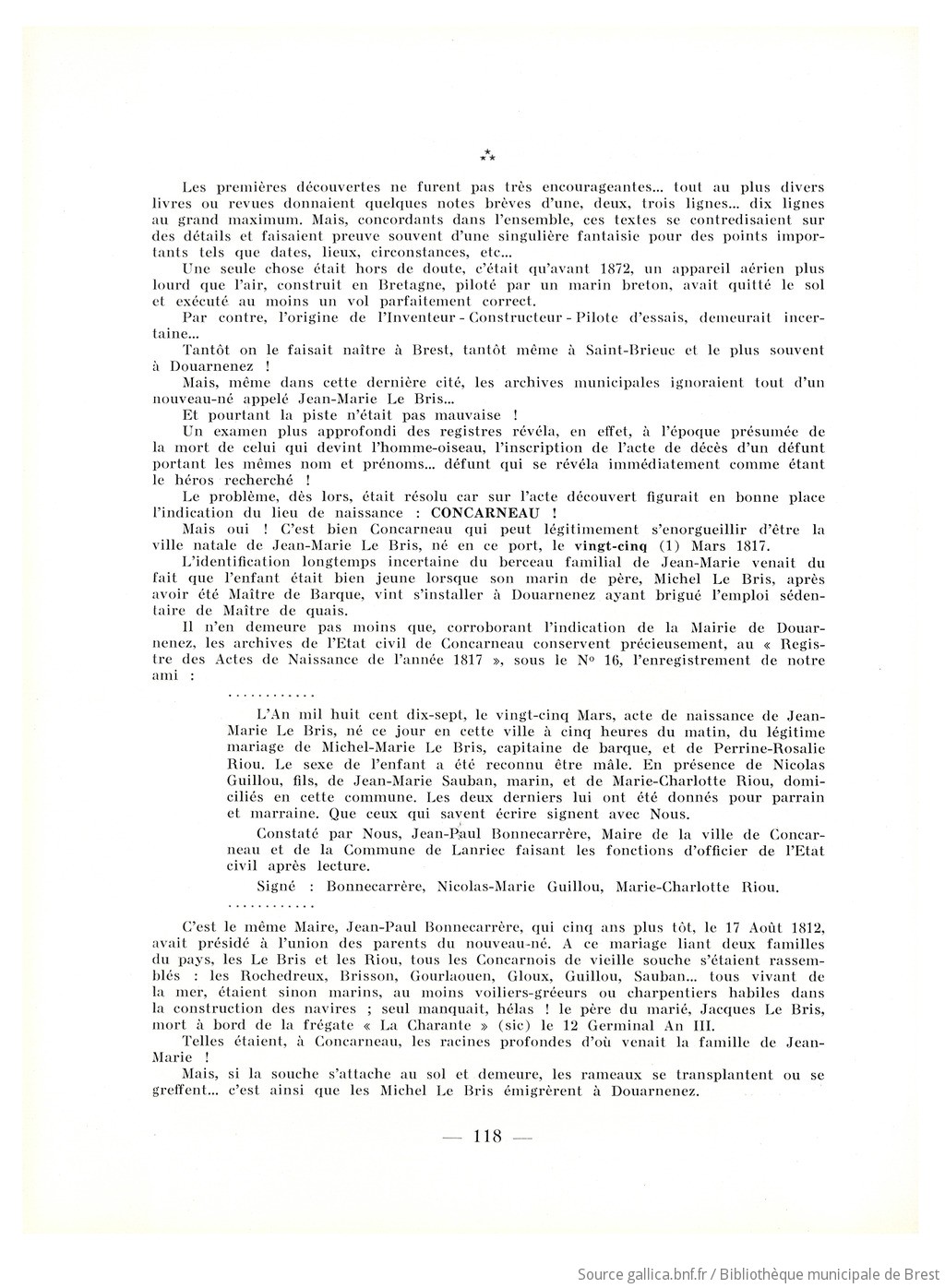 Jean-Marie Le Bris, Michel-Marie Le Bris, Perrine-Rosalie Riou, Nicolas Guillou fils, Jean-Marie Sauban, Marie-Charlotte Riou, Jean-Paul Bonnecarrère, Rochedreux, Brisson, Gourlaouen, Gloux, Jacques Le Bris, Pépin fils, Charles Dollfus, Henson, Aubaud, Ch.-Yves Peslin, Alphonse Martin, H. Schneider
