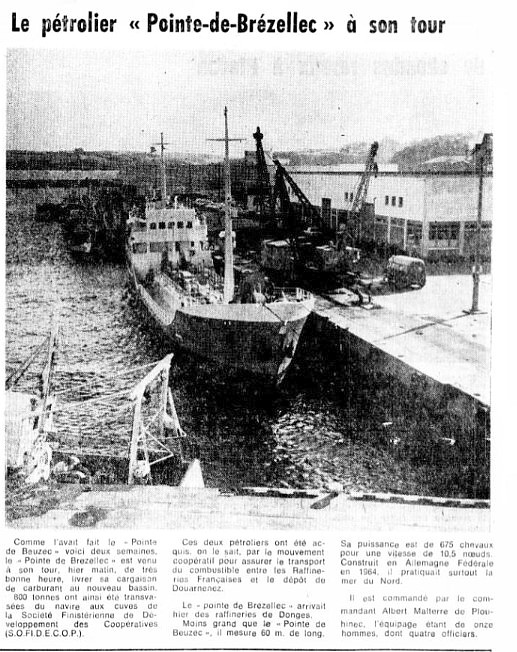 Journal Ouest-France Date 10 novembre 1971 Bateau(x) POINTE DE BREZELLEC - DZ4232 Petrolier, Divers - 1973 POINTE DE BEUZEC - DZ4231 Petrolier, Divers - 1972-1988 Mots-clés Carburant Lieu(x) Douarnenez, Donges, Allemagne, Mer du Nord, Plouhinec Personnes Commandant Albert Malterre Image