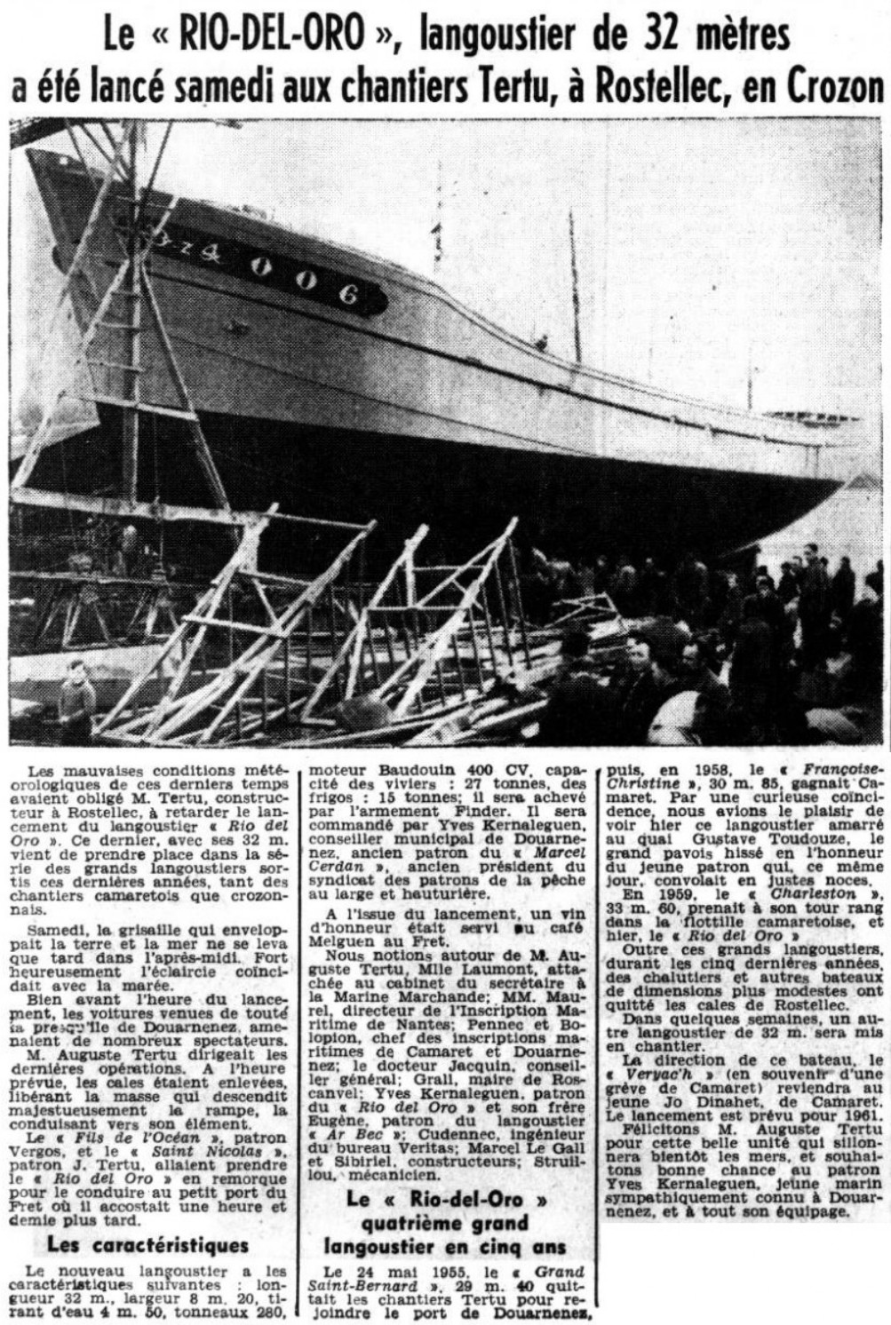 Le "RIO-DEL-ORO", langoustier de 32 mètres, a été lancé samedi aux chantiers Tertu, à Rostellec, en Crozon