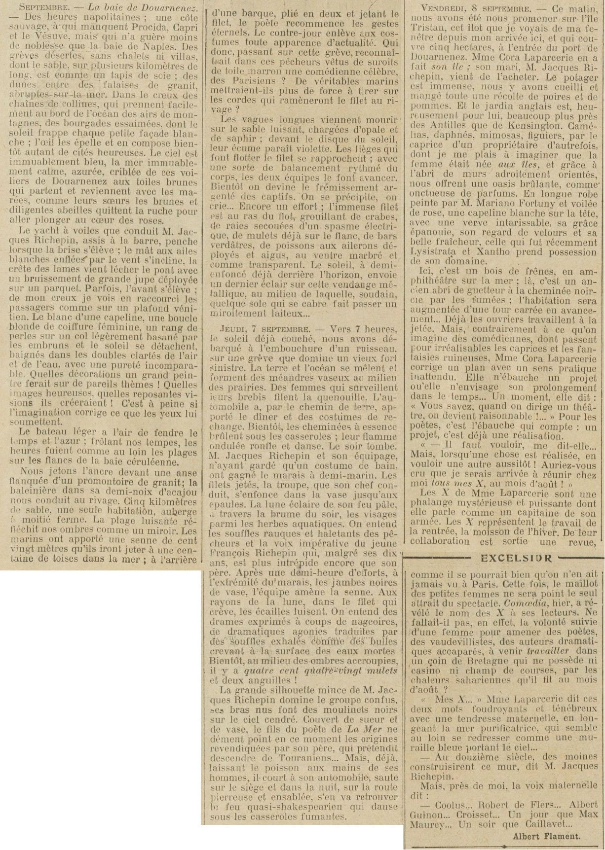 Albert Flament, Jacques Richepin, François Richepin, Cora Laparcerie, Mariano Fortuny, Coolus, Robert de Flers, Albert Guinon, Croisset, Max Maurey, Caillavet