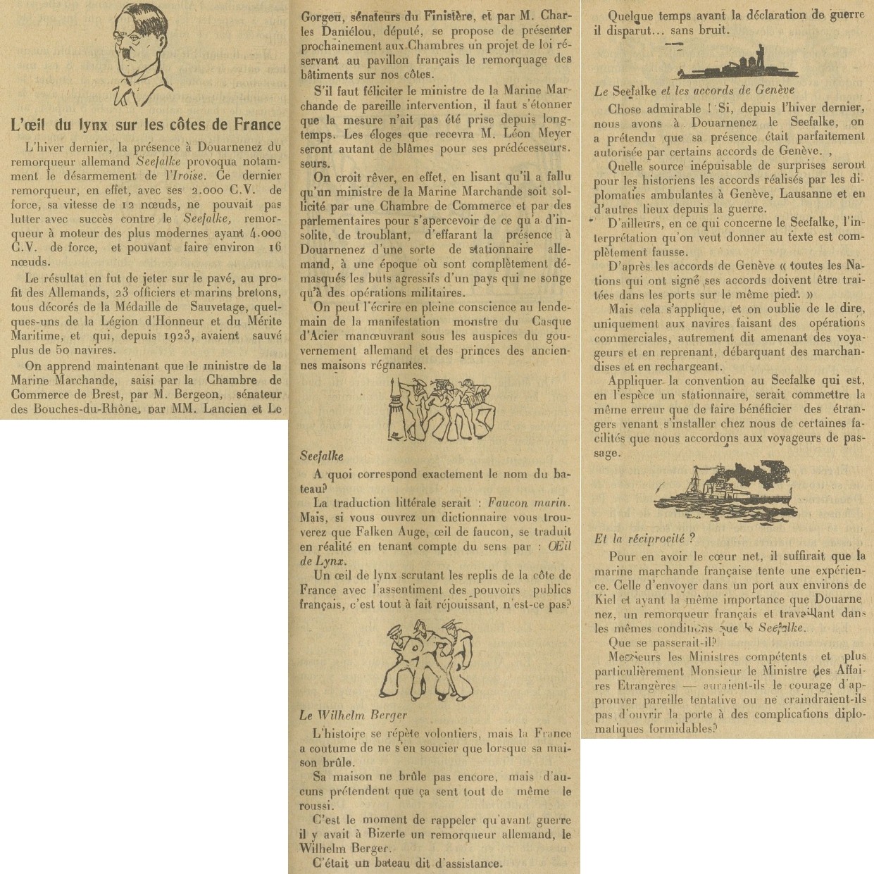 remorqueur allemand "Seefalke", remorqueur "Iroise", remorqueur allemand "Wilhelm Berger"